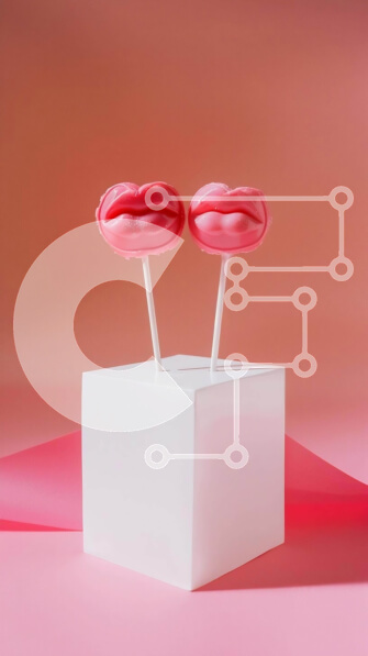 Intra Συλλεκτικό Ξύλινο Παζλ Plywood 4mm – Ροζ γλειφιτζούρια σε λευκό κύβο σε ροζ φόντο Σε Ξύλινο Κουτί – Διαστάσεις Puzzle: 10×10 cm – 25 κομμάτια