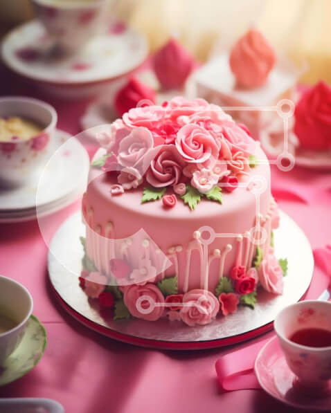 Intra Συλλεκτικό Ξύλινο Παζλ Plywood 4mm – Ροζ κέικ με τριαντάφυλλα και φλιτζάνια τσαγιού Σε Ξύλινο Κουτί – Διαστάσεις: 10×10 cm – 25 κομμάτια