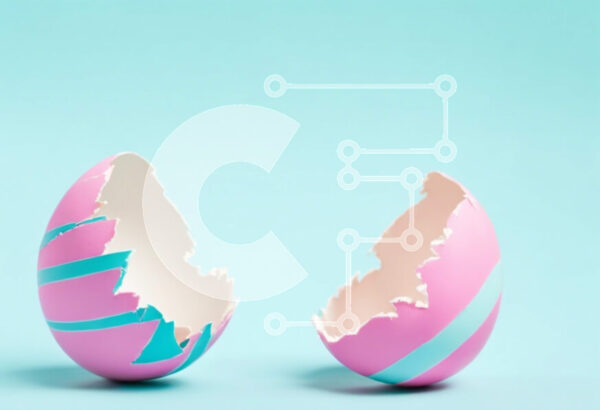 Intra Συλλεκτικό Ξύλινο Παζλ Plywood 4mm – Ροζ και μπλε Πασχαλινά αυγά σε μπλε φόντο Σε Ξύλινο Κουτί – Διαστάσεις: 10×10 cm – 25 κομμάτια