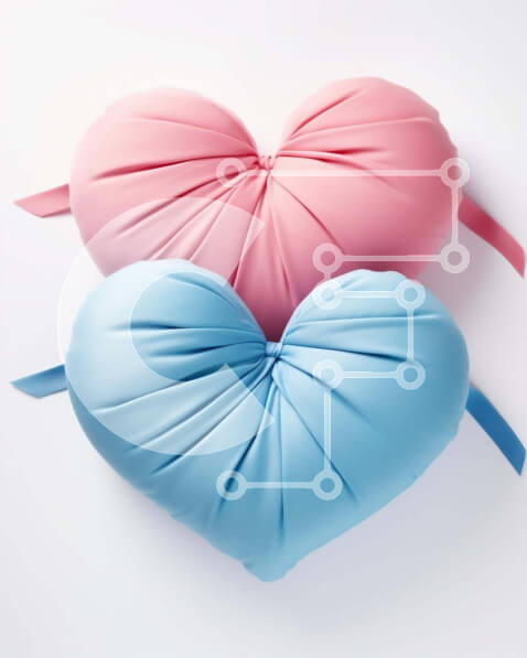 Intra Συλλεκτικό Ξύλινο Παζλ Plywood 4mm – Ροζ και μπλε μαξιλάρια σε σχήμα καρδιάς σε λευκό φόντο Σε Ξύλινο Κουτί – Διαστάσεις Puzzle: 10×10 cm – 25 κομμάτια