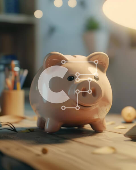 Intra Συλλεκτικό Ξύλινο Παζλ Plywood 4mm – Ροζ κουμπαράς σε ξύλινο τραπέζι με φορητό υπολογιστή και είδη γραφείου Σε Ξύλινο Κουτί – Διαστάσεις Puzzle: 10×10 cm – 25 κομμάτια