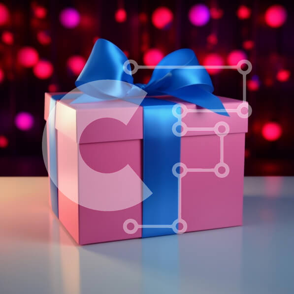 Intra Συλλεκτικό Ξύλινο Παζλ Plywood 4mm – Ροζ Κουτί δώρου με μπλε κορδέλα και φωτάκια Σε Ξύλινο Κουτί – Διαστάσεις Puzzle: 10×10 cm – 25 κομμάτια