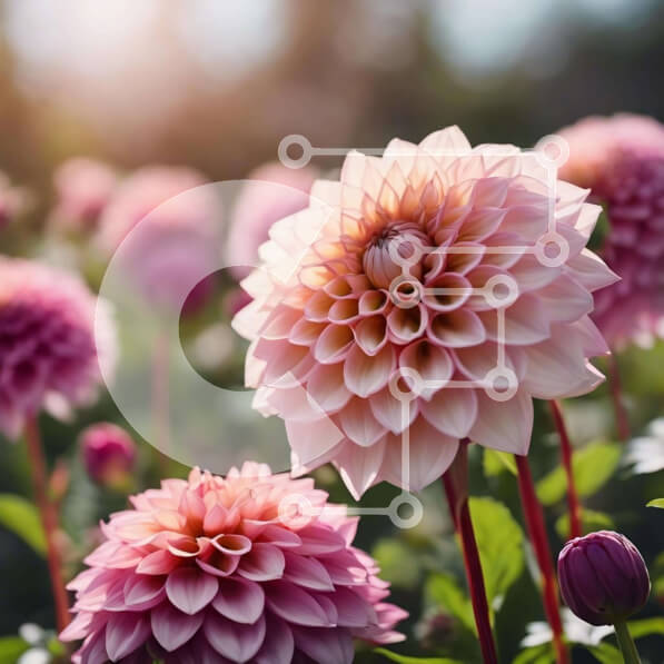 Intra Συλλεκτικό Ξύλινο Παζλ Plywood 4mm – Ροζ λουλούδια Ντάλια σε έναν ηλιόλουστο κήπο Σε Ξύλινο Κουτί – Διαστάσεις: 10×10 cm – 25 κομμάτια