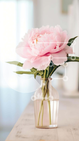 Intra Συλλεκτικό Ξύλινο Παζλ Plywood 4mm – Ροζ λουλούδι παιώνιας σε διάφανο βάζο στο τραπέζι Σε Ξύλινο Κουτί – Διαστάσεις: 10×10 cm – 25 κομμάτια