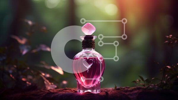 Intra Συλλεκτικό Ξύλινο Παζλ Plywood 4mm – Ροζ μπουκάλι αρώματος σε δάσος Σε Ξύλινο Κουτί – Διαστάσεις Puzzle: 10×10 cm – 25 κομμάτια