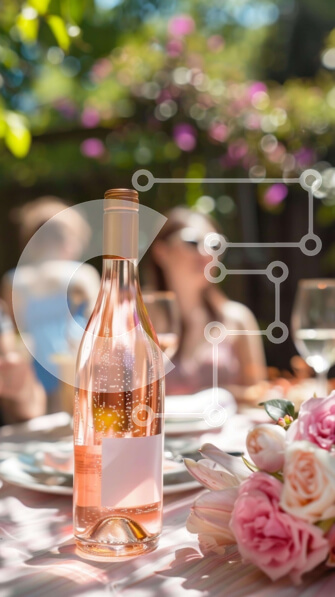 Intra Συλλεκτικό Ξύλινο Παζλ Plywood 4mm – Ροζ μπουκάλι κρασιού και ποτήρια σε υπαίθρια συγκέντρωση Σε Ξύλινο Κουτί – Διαστάσεις: 10×10 cm – 25 κομμάτια