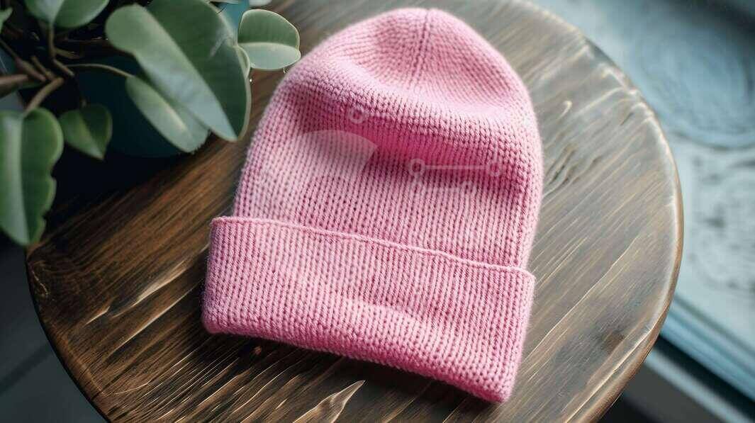 Intra Συλλεκτικό Ξύλινο Παζλ Plywood 4mm – Ροζ πλεκτό καπέλο Beanie σε ξύλινο τραπέζι Σε Ξύλινο Κουτί – Διαστάσεις Puzzle: 10×10 cm – 25 κομμάτια