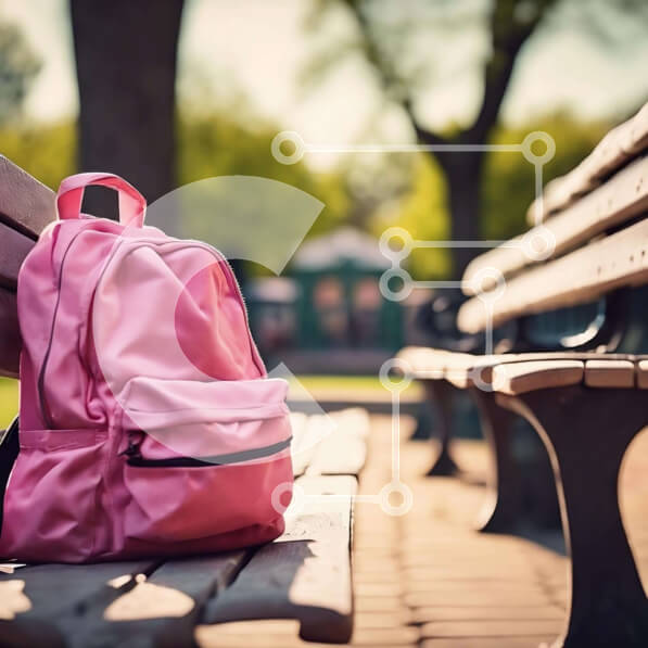 Intra Συλλεκτικό Ξύλινο Παζλ Plywood 4mm – Ροζ σακίδιο πλάτης στον πάγκο του πάρκου Σε Ξύλινο Κουτί – Διαστάσεις: 10×10 cm – 25 κομμάτια