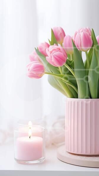 Intra Συλλεκτικό Ξύλινο Παζλ Plywood 4mm – Ροζ τουλίπες σε βάζο με αναμμένα κηροπήγια Σε Ξύλινο Κουτί – Διαστάσεις Puzzle: 10×10 cm – 25 κομμάτια