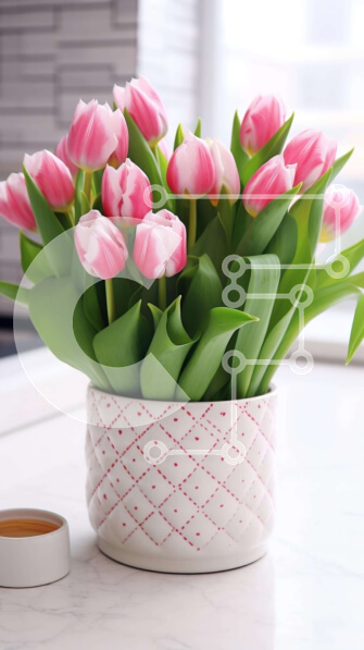 Intra Συλλεκτικό Ξύλινο Παζλ Plywood 4mm – Ροζ τουλίπες σε λευκό βάζο σε ανοιχτό πάγκο Σε Ξύλινο Κουτί – Διαστάσεις: 10×10 cm – 25 κομμάτια