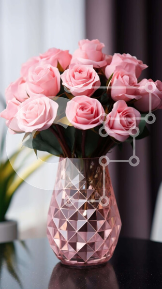 Intra Συλλεκτικό Ξύλινο Παζλ Plywood 4mm – Ροζ τριαντάφυλλα σε γυάλινο βάζο στο τραπέζι Σε Ξύλινο Κουτί – Διαστάσεις Puzzle: 10×10 cm – 25 κομμάτια