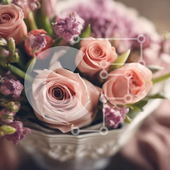 Intra Συλλεκτικό Ξύλινο Παζλ Plywood 4mm – Ροζ τριαντάφυλλα και άλλα λουλούδια σε λευκό βάζο στο τραπέζι Σε Ξύλινο Κουτί – Διαστάσεις: 10×10 cm – 25 κομμάτια