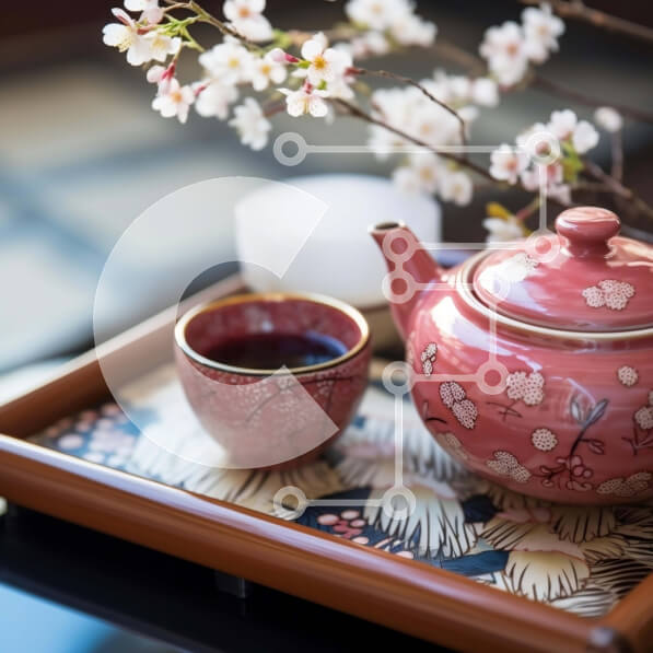 Intra Συλλεκτικό Ξύλινο Παζλ Plywood 4mm – Ροζ τσαγιέρα και φλιτζάνι με ανθισμένες κερασιές Σε Ξύλινο Κουτί – Διαστάσεις: 10×10 cm – 25 κομμάτια