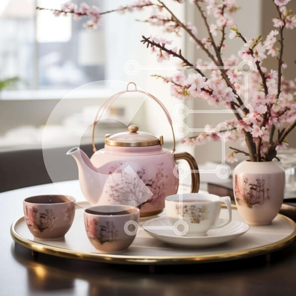 Intra Συλλεκτικό Ξύλινο Παζλ Plywood 4mm – Ροζ τσαγιέρα και φλιτζάνια σε οβάλ δίσκο με λουλούδια Σε Ξύλινο Κουτί – Διαστάσεις: 10×10 cm – 25 κομμάτια