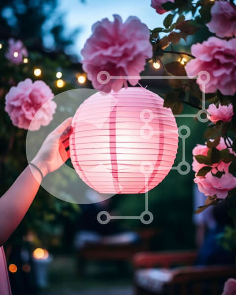 Intra Συλλεκτικό Ξύλινο Παζλ Plywood 4mm – Ροζ χάρτινο φανάρι στο υπαίθριο πάρτι Σε Ξύλινο Κουτί – Διαστάσεις Puzzle: 10×10 cm – 25 κομμάτια