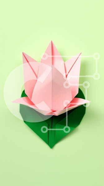 Intra Συλλεκτικό Ξύλινο Παζλ Plywood 4mm – Ροζ Origami λουλούδι Lotus σε πράσινο φύλλο Σε Ξύλινο Κουτί – Διαστάσεις: 10×10 cm – 25 κομμάτια