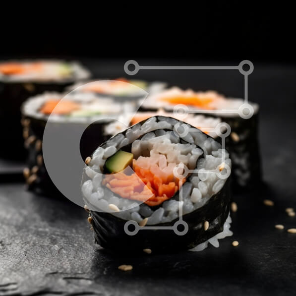Intra Συλλεκτικό Ξύλινο Παζλ Plywood 4mm – Ρολά σούσι με σολομό και αβοκάντο σε σκοτεινό φόντο Σε Ξύλινο Κουτί – Διαστάσεις: 10×10 cm – 25 κομμάτια