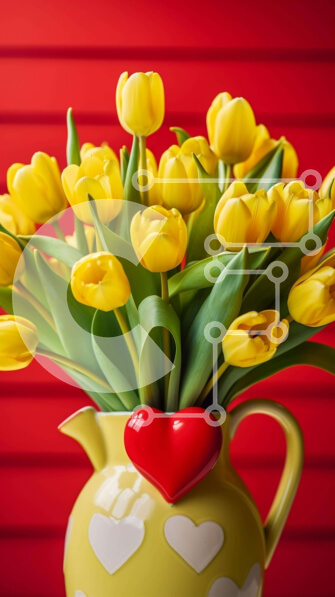 Intra Συλλεκτικό Ξύλινο Παζλ Plywood 4mm – Ρομαντικές κίτρινες τουλίπες σε βάζο με κόκκινες καρδιές Σε Ξύλινο Κουτί – Διαστάσεις Puzzle: 10×10 cm – 25 κομμάτια
