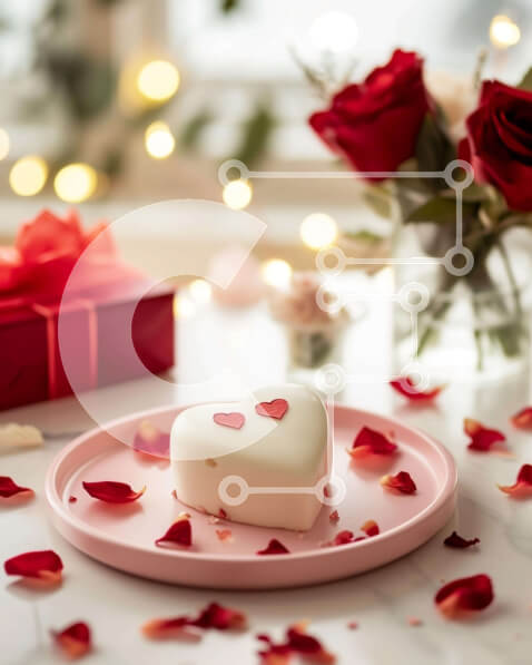 Intra Συλλεκτικό Ξύλινο Παζλ Plywood 4mm – Ρομαντική γιορτή του Αγίου Βαλεντίνου με κέικ σε σχήμα καρδιάς και τριαντάφυλλα Σε Ξύλινο Κουτί – Διαστάσεις: 10×10 cm – 25 κομμάτια