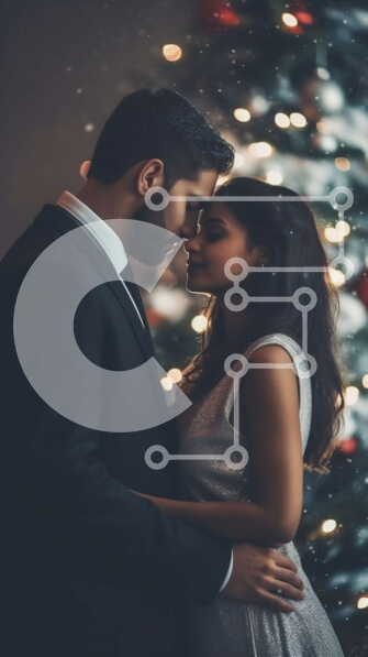 Intra Συλλεκτικό Ξύλινο Παζλ Plywood 4mm – Ρομαντική φωτογραφία διακοπών: Ζευγάρι αγκαλιάζεται μπροστά από το χριστουγεννιάτικο δέντρο Σε Ξύλινο Κουτί – Διαστάσεις: 10×10 cm – 25 κομμάτια