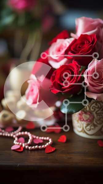 Intra Συλλεκτικό Ξύλινο Παζλ Plywood 4mm – Ρομαντική διακόσμηση του Αγίου Βαλεντίνου με τριαντάφυλλα και πέρλες Σε Ξύλινο Κουτί – Διαστάσεις: 10×10 cm – 25 κομμάτια