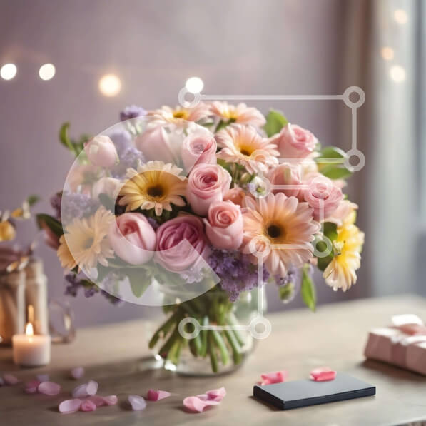 Intra Συλλεκτικό Ξύλινο Παζλ Plywood 4mm – Ρομαντική φλοράλ σύνθεση με βάζο, κεριά και κινητό Σε Ξύλινο Κουτί – Διαστάσεις: 10×10 cm – 25 κομμάτια