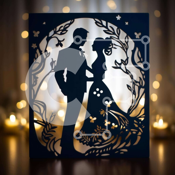 Intra Συλλεκτικό Ξύλινο Παζλ Plywood 4mm – Ρομαντική σιλουέτα νύφης και γαμπρού με κεριά Σε Ξύλινο Κουτί – Διαστάσεις: 10×10 cm – 25 κομμάτια