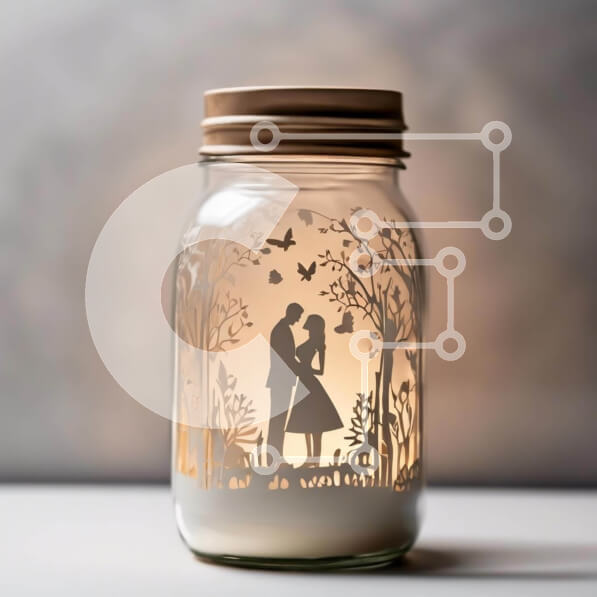 Intra Συλλεκτικό Ξύλινο Παζλ Plywood 4mm – Ρομαντική σιλουέτα σε βάζο Mason με φως κεριού Σε Ξύλινο Κουτί – Διαστάσεις Puzzle: 10×10 cm – 25 κομμάτια
