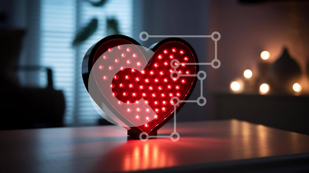 Intra Συλλεκτικό Ξύλινο Παζλ Plywood 4mm – Ρομαντικό φως σε σχήμα καρδιάς σε ξύλινο τραπέζι Σε Ξύλινο Κουτί – Διαστάσεις: 10×10 cm – 25 κομμάτια
