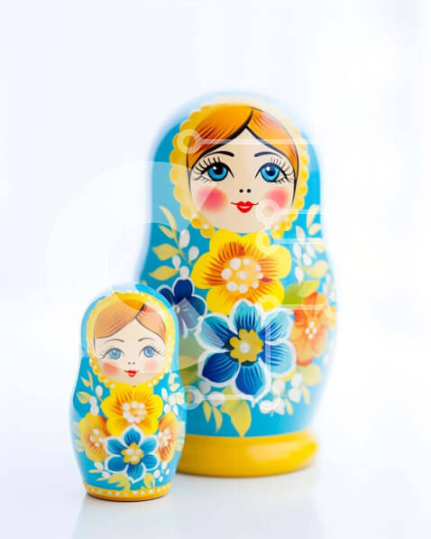 Intra Συλλεκτικό Ξύλινο Παζλ Plywood 4mm – Ρωσικές κούκλες φωλιάσματος με μπλε φόντο και κίτρινα λουλούδια Σε Ξύλινο Κουτί – Διαστάσεις: 10×10 cm – 25 κομμάτια