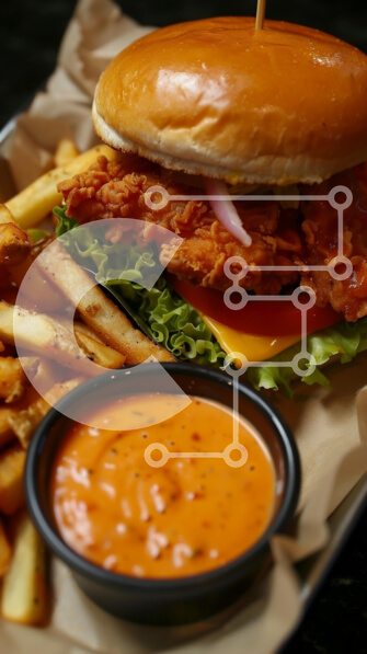 Intra Συλλεκτικό Ξύλινο Παζλ Plywood 4mm – Σάντουιτς με τηγανητό κοτόπουλο με πατάτες και σάλτσα Σε Ξύλινο Κουτί – Διαστάσεις: 10×10 cm – 25 κομμάτια