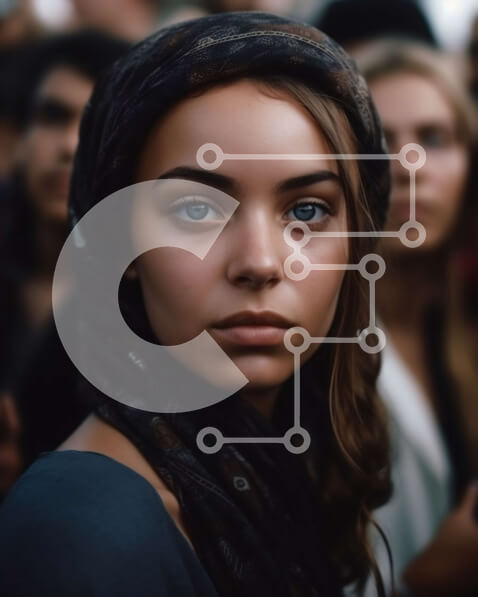 Intra Συλλεκτικό Ξύλινο Παζλ Plywood 4mm – Σίγουρη νεαρή γυναίκα που στέκεται μπροστά στο πλήθος με σοβαρή έκφραση Σε Ξύλινο Κουτί – Διαστάσεις Puzzle: 10×10 cm – 25 κομμάτια