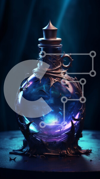 Intra Συλλεκτικό Ξύλινο Παζλ Plywood 4mm – Σαγηνευτική εικόνα του μπλε λαμπερού υγρού σε γυάλινο μπουκάλι Σε Ξύλινο Κουτί – Διαστάσεις Puzzle: 10×10 cm – 25 κομμάτια