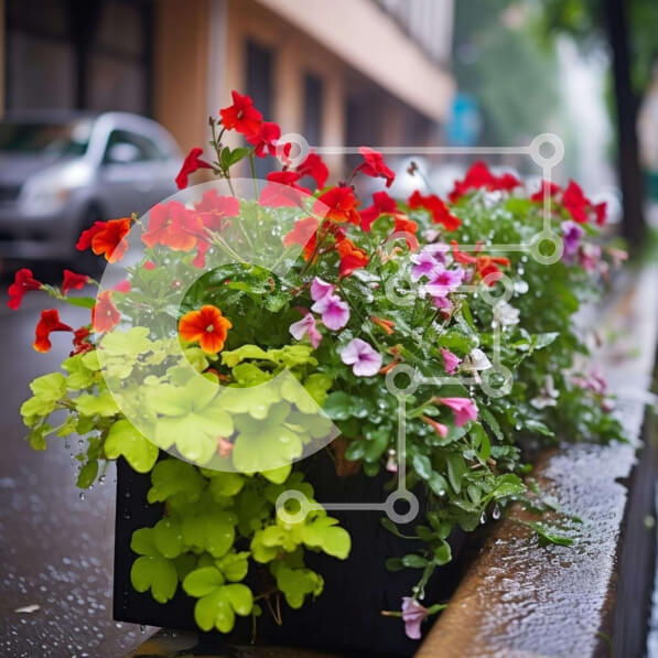 Intra Συλλεκτικό Ξύλινο Παζλ Plywood 4mm – Σειρά από γλάστρες με πολύχρωμα λουλούδια στο πεζοδρόμιο Σε Ξύλινο Κουτί – Διαστάσεις: 10×10 cm – 25 κομμάτια