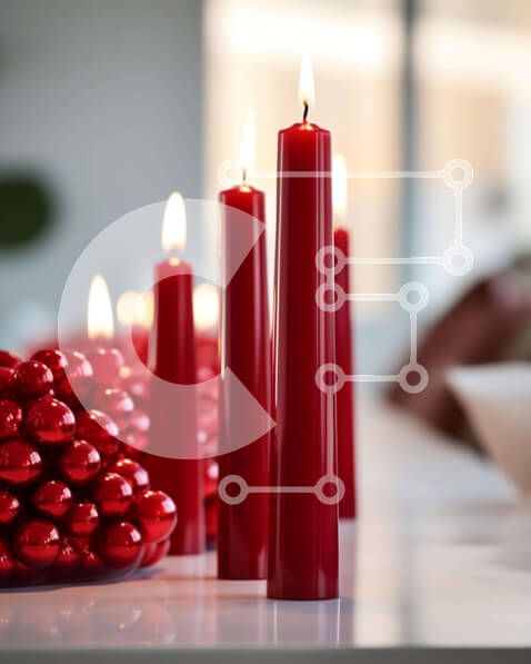 Intra Συλλεκτικό Ξύλινο Παζλ Plywood 4mm – Σειρά από κόκκινα κεριά και μπάλες σε ένα τραπέζι Σε Ξύλινο Κουτί – Διαστάσεις Puzzle: 10×10 cm – 25 κομμάτια