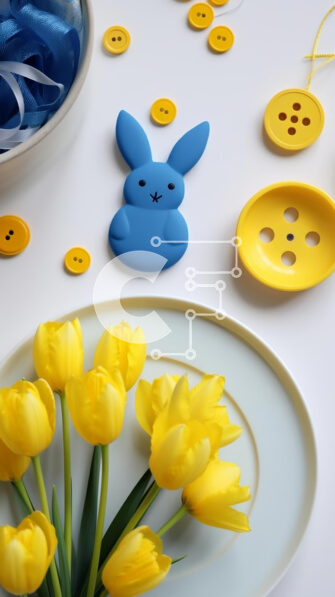 Intra Συλλεκτικό Ξύλινο Παζλ Plywood 4mm – Σετ πασχαλινό τραπέζι με κίτρινες τουλίπες και στολίδια λαγουδάκι Σε Ξύλινο Κουτί – Διαστάσεις: 10×10 cm – 25 κομμάτια