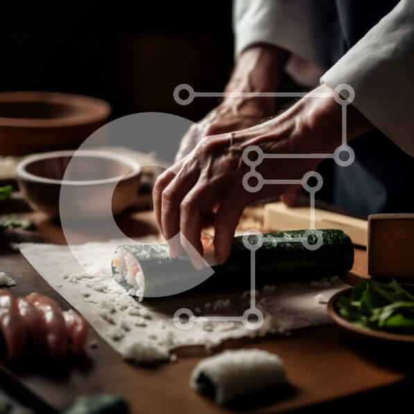 Intra Συλλεκτικό Ξύλινο Παζλ Plywood 4mm – Σεφ σούσι που ετοιμάζει φρέσκα ρολά σούσι με ψάρια, λαχανικά και ρύζι Σε Ξύλινο Κουτί – Διαστάσεις: 10×10 cm – 25 κομμάτια