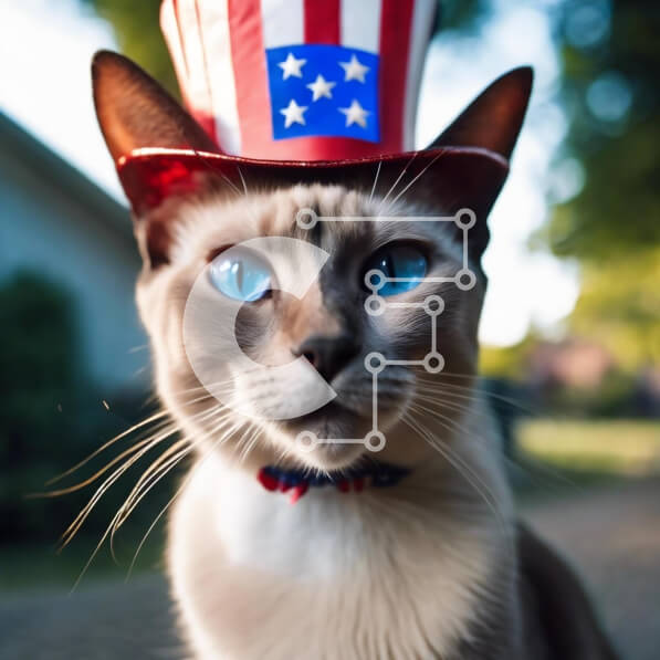 Intra Συλλεκτικό Ξύλινο Παζλ Plywood 4mm – Σιαμέζικη γάτα με καπέλο αμερικανικής σημαίας με μπλε μάτια Σε Ξύλινο Κουτί – Διαστάσεις: 10×10 cm – 25 κομμάτια