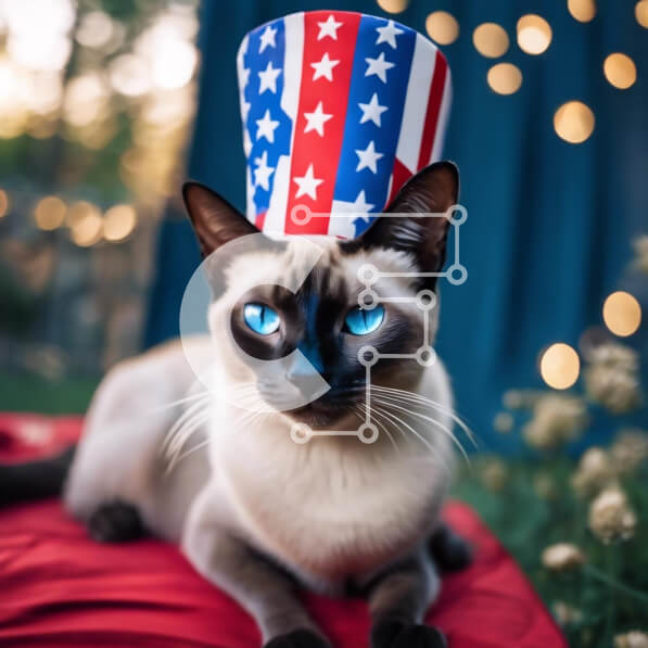Intra Συλλεκτικό Ξύλινο Παζλ Plywood 4mm – Σιαμέζικη γάτα με καπέλο αμερικανικής σημαίας Σε Ξύλινο Κουτί – Διαστάσεις: 10×10 cm – 25 κομμάτια