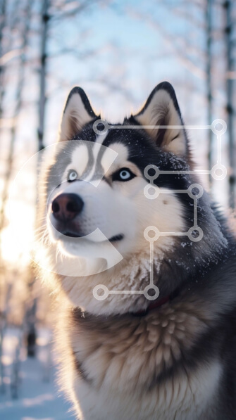 Intra Συλλεκτικό Ξύλινο Παζλ Plywood 4mm – Σιβηρικός γεροδεμένος σκύλος στο χιονισμένο δάσος Σε Ξύλινο Κουτί – Διαστάσεις: 10×10 cm – 25 κομμάτια