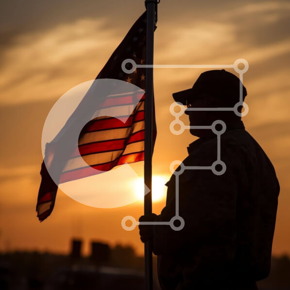 Intra Συλλεκτικό Ξύλινο Παζλ Plywood 4mm – Σιλουέτα ενός άνδρα που κρατά την αμερικανική σημαία ενάντια στο ηλιοβασίλεμα Σε Ξύλινο Κουτί – Διαστάσεις Puzzle: 10×10 cm – 25 κομμάτια