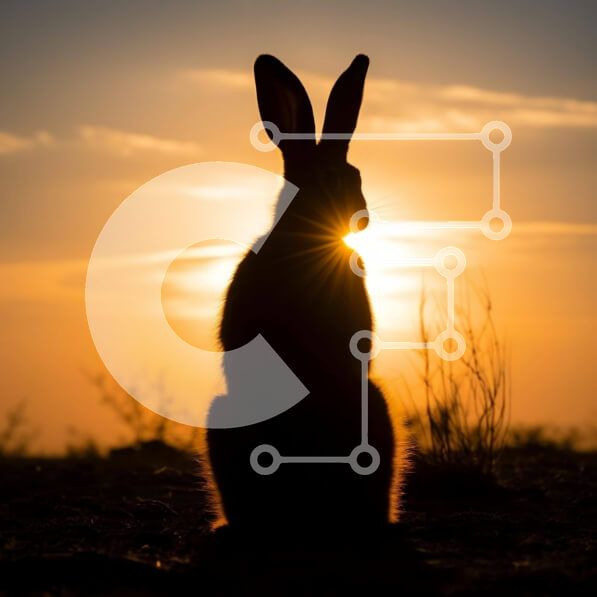 Intra Συλλεκτικό Ξύλινο Παζλ Plywood 4mm – Σιλουέτα κουνελιού στο χωράφι στο ηλιοβασίλεμα Σε Ξύλινο Κουτί – Διαστάσεις: 10×10 cm – 25 κομμάτια