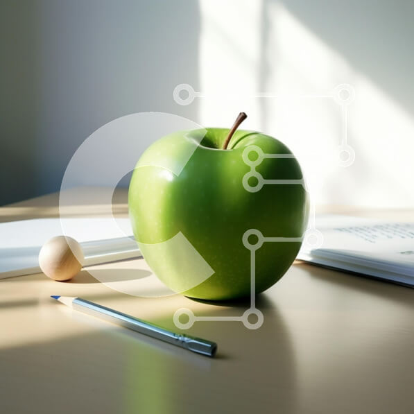 Intra Συλλεκτικό Ξύλινο Παζλ Plywood 4mm – Σκηνή γραφείου με πράσινο μήλο, αυγό, στυλό, βιβλία και χαρτιά Σε Ξύλινο Κουτί – Διαστάσεις: 10×10 cm – 25 κομμάτια