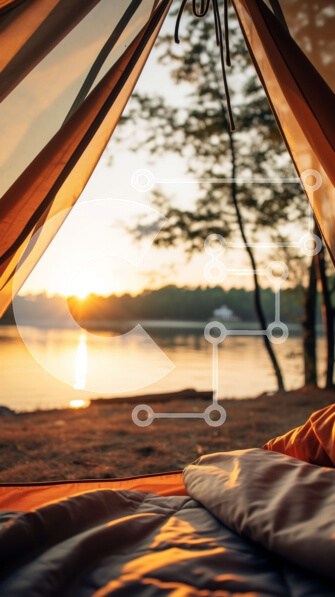 Intra Συλλεκτικό Ξύλινο Παζλ Plywood 4mm – Σκηνή Κάμπινγκ δίπλα στο νερό στο ηλιοβασίλεμα Σε Ξύλινο Κουτί – Διαστάσεις: 10×10 cm – 25 κομμάτια