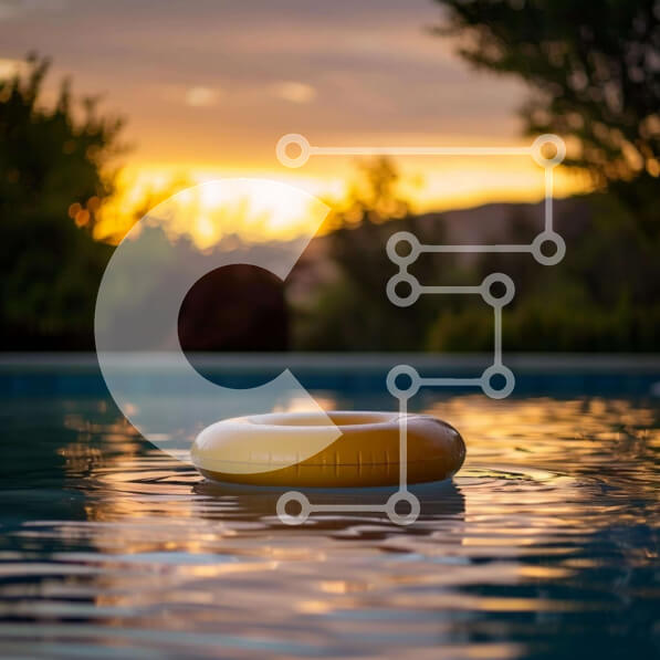 Intra Συλλεκτικό Ξύλινο Παζλ Plywood 4mm – Σκηνή πισίνας ηλιοβασιλέματος με κίτρινο προστατευτικό ζωής Σε Ξύλινο Κουτί – Διαστάσεις Puzzle: 10×10 cm – 25 κομμάτια