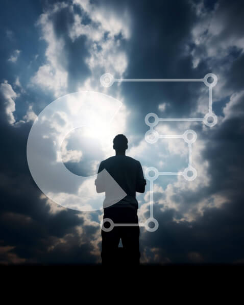 Intra Συλλεκτικό Ξύλινο Παζλ Plywood 4mm – Σκιαγραφημένος άνθρωπος που κοιτάζει τον ουρανό και τα σύννεφα Σε Ξύλινο Κουτί – Διαστάσεις Puzzle: 10×10 cm – 25 κομμάτια