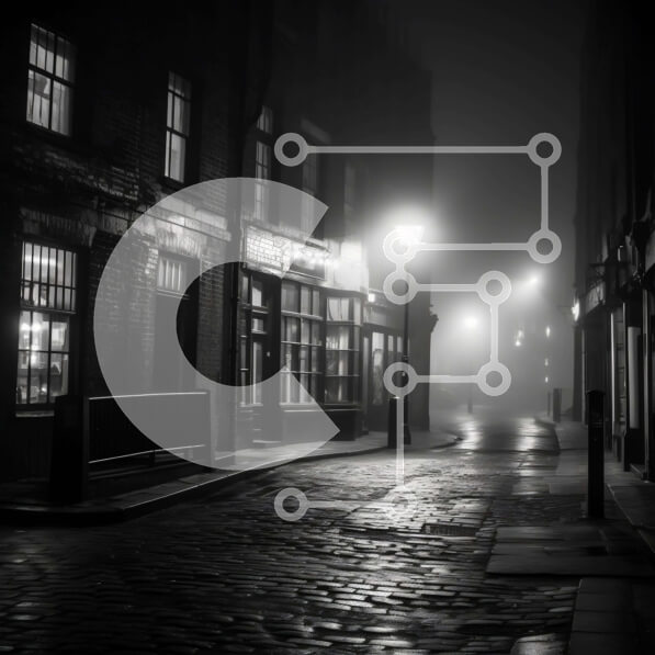 Intra Συλλεκτικό Ξύλινο Παζλ Plywood 4mm – Σκοτεινή ομιχλώδης οδός με κτίρια και δέντρα Σε Ξύλινο Κουτί – Διαστάσεις Puzzle: 10×10 cm – 25 κομμάτια