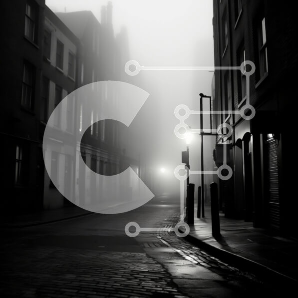 Intra Συλλεκτικό Ξύλινο Παζλ Plywood 4mm – Σκοτεινή ομιχλώδης οδός με κτίρια και δέντρα Σε Ξύλινο Κουτί – Διαστάσεις Puzzle: 10×10 cm – 25 κομμάτια