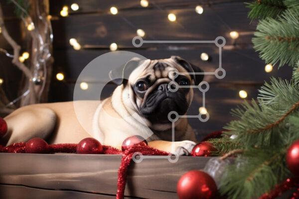 Intra Συλλεκτικό Ξύλινο Παζλ Plywood 4mm – Σκυλί πατημασιά ανάμεσα στις χριστουγεννιάτικες διακοσμήσεις Σε Ξύλινο Κουτί – Διαστάσεις: 10×10 cm – 25 κομμάτια