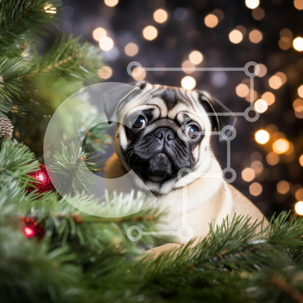 Intra Συλλεκτικό Ξύλινο Παζλ Plywood 4mm – Σκυλί πατημασιά ανάμεσα στο χριστουγεννιάτικο δέντρο Σε Ξύλινο Κουτί – Διαστάσεις: 10×10 cm – 25 κομμάτια